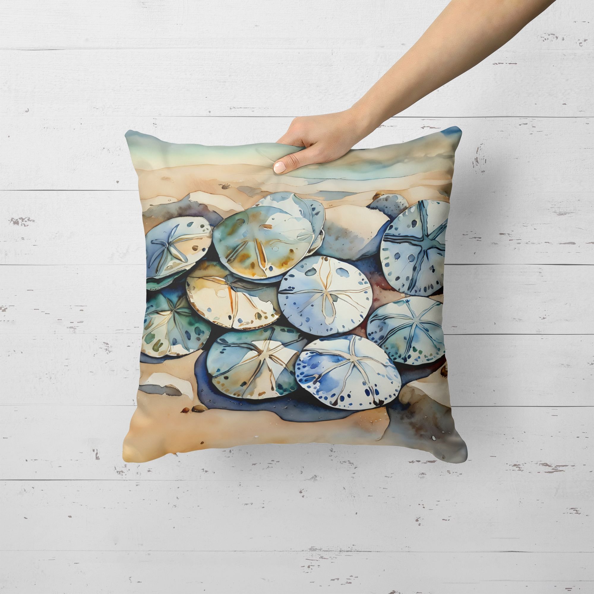 Throw Pillow featuring breed specific Sand Dollars artwork. Revitalize your outdoor or indoor living space with Caroline's Treasures 18x18 Fabric Decorative Pillow. With a generously sized dimension of approximately 18 inches by 18 inches, this pillow makes a comfortable and aesthetic addition to any seating area. Made from a unique, water-resistant material developed by Caroline's Treasures, the pillow sham is 100% polyester fabric that's durable and ready to weather any condition. Its vibrant, full-color artwork will not fade over time as it is dyed with color-fast dyes. Whether you place it on your patio furniture, porch, veranda, or indoor couch, its soft canvas fabric ensures a cozy experience. The pillow is handcrafted in the United States, featuring a sham created from three pieces of fabric and a polyester insert for enduring shape and overstuffed comfort. Despite being robustly built to endure the outdoors, it is as soft and snug as your favorite indoor cushions. Please note, as all our pillows are handmade, sizes may vary slightly, adding to the charm of this unique decorative item.